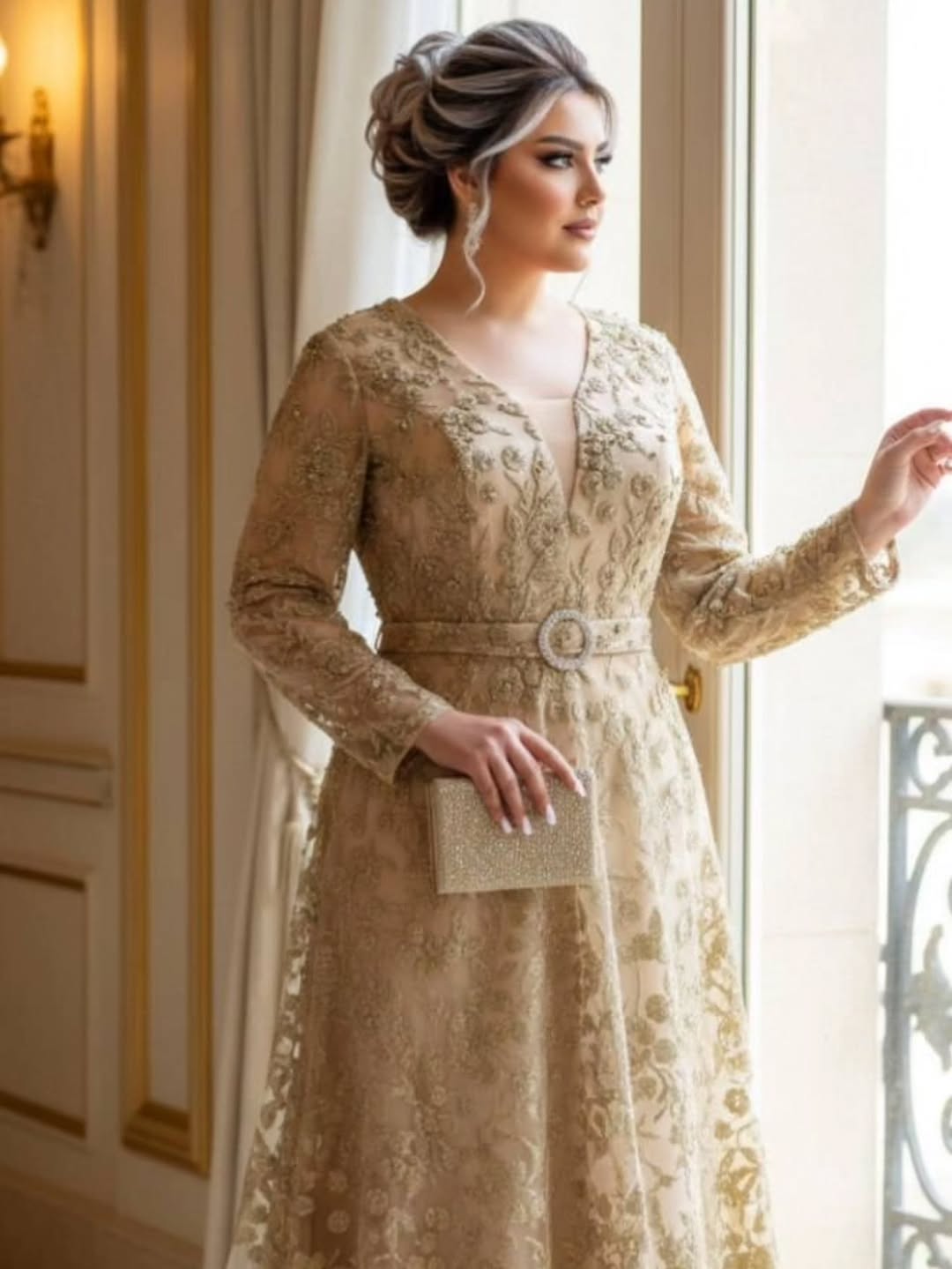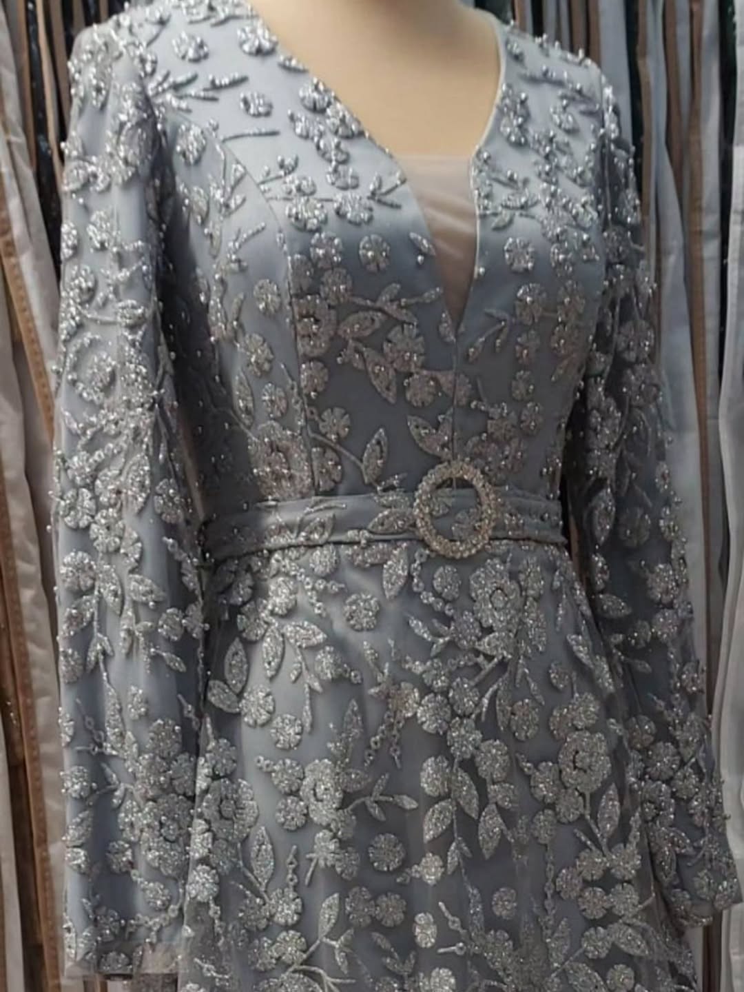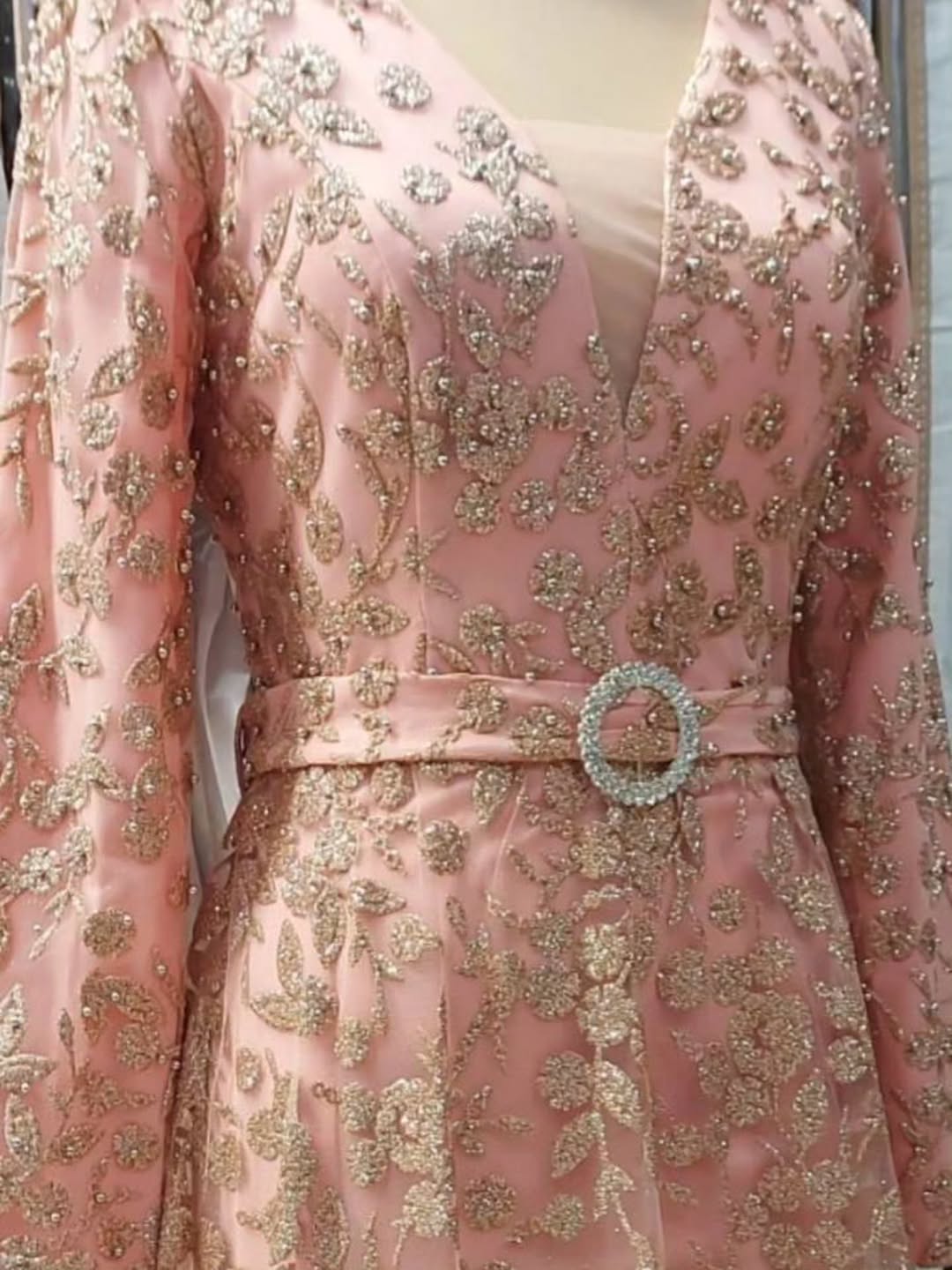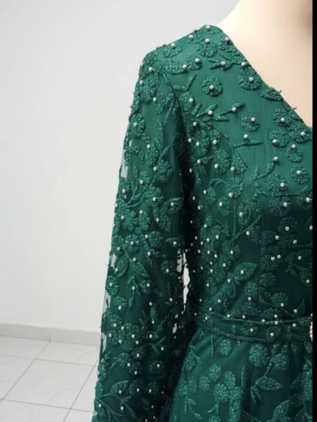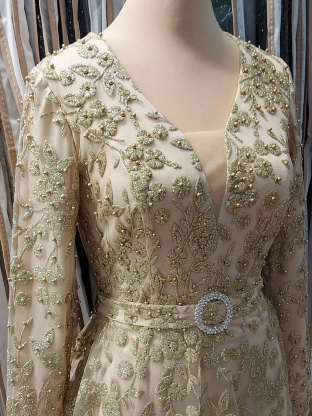 ماکسی حریر شاین پفکی مروارید دوزی شده گلبرگ سایز ۴۴-۵۲